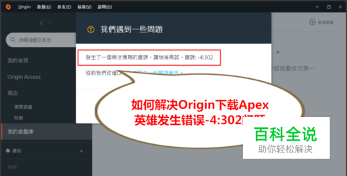 如何解决Origin下载Apex英雄发生错误-4:302问题