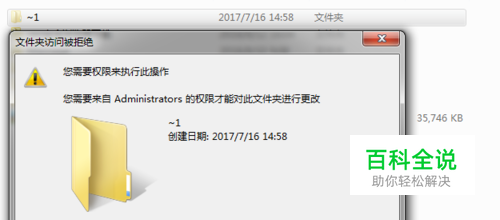 如图所示,电脑上的一个~1的文件夹想删除,但是一点击删除的时候就出来如下界面,提示需要来自administrators的权限才能对其进行操作。