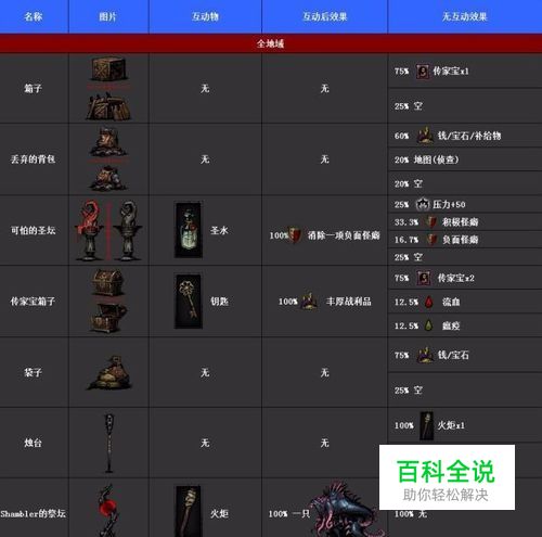 暗黑地牢全互动物品大全 互动道具大全 2025-06-03 23:55:02 暗黑地牢中各个地域可互动的道具非常多,当然互动后获得的物品及效果也不同,现在我给大家介绍下。 操作方法 01 全地域 02 遗迹 03 贫民窟 04 旷野 05 小海湾 赞 (0) 相关推荐 暗黑地牢血色宫廷攻略 暗黑地牢最新的DLC鲜血宫廷终于正式发布了,和原版游戏一样游戏中也是有很多地方可以进行物品互动的.今天小编为大家带来的便是玩家"死亡循环IsMe"整理分享的DLC鲜血宫廷部分物品互 ... 暗黑地牢苦修者攻略 今天小编给大家带来的是暗黑地牢苦修者攻略,希望能帮助到大家! 操作方法 01 首先,苦修者输出不高,但是带高出血和控制技能. 02 百分比加血治疗能力很高一次可以给自己和队友加百分之30多的血量. 0 ... 暗黑地牢血色庭院攻略 <暗黑地牢:血色庭院>是一款注重随机的单机游戏,从其炫酷又不烦杂的场面与独特的设计令玩家爱不释手,那么暗黑地牢血色庭院有什么玩法攻略呢? 操作方法 01 第一,在暗黑地牢,血色庭院中,游戏 ... 暗黑地牢人物MOD怎么装 今天小编和大家分享暗黑地牢人物MOD怎么装,希望对大家有所帮助. 操作方法 01 首先去在网站上搜索下载MOD后解压缩,复制解压的文件. 02 然后覆盖到游戏目录Besiege\Besiege_Dat ... 《龙腾世纪2》全制造物品获取地图攻略(二) <龙腾世纪2>全制造物品获取地图攻略(二) 步骤/方法 01 THE BONE PIT 02 THE BONE PIT MINES (BONE PIT): You can only acc ... 漫画英雄跑酷道具大全详解 操作方法 01 漫画英雄跑酷道具大全为大家整理好了,只有对道具很好的了解了,才能更好的跑出高分,有需要的小伙伴请参考这篇漫画英雄跑酷道具大全,希望对大家玩游戏能有所帮助. 超级英雄意志 在游戏失败后, ... 暗黑3全章节关底BOSS数据和详尽攻略 暗黑3全章节关底BOSS数据和详尽攻略 操作方法 01 P1:清杂兵,使用AE攻击和减速比较有效 02 P2:贝利尔的幻象,此阶段贝利尔的主要攻击手段为火球术,向前方扇形区域施放出3个火球(参照WOW ... 暗黑地牢如何扎营 总所周知因为暗黑地牢这款游戏很多中国朋友以前没有接触这类游戏,或者第一次接触这种类型的游戏.不过游戏是好游戏但是很多地方不懂.有不懂得地方希望你多问.我可以帮你回答. 操作方法 01 先我们需要了解到 ... 如何制作互动视频(互动视频都是怎么做的) 爱奇艺"互动视频标准"究竟定义了什么?将为制作方带来哪些帮助?互动视频的制作是否真能如传统视频一样形成一套流程和标准?技术与内容的结合未来还有哪些想象空间?记者在爱奇艺世界·大会上 ...