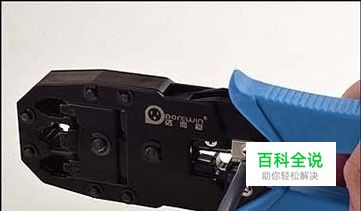 将网线放入网线钳专用的剪线口,用力按压手把;