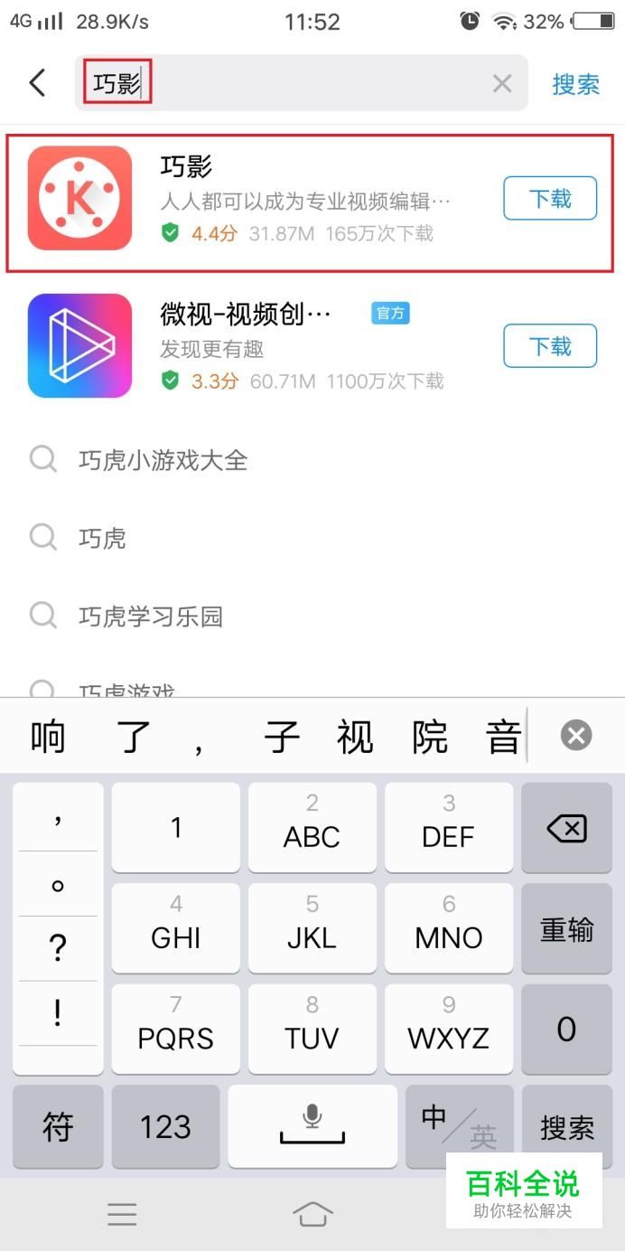 首先使用手机应用软件下载并安装巧影APP,如图所示
