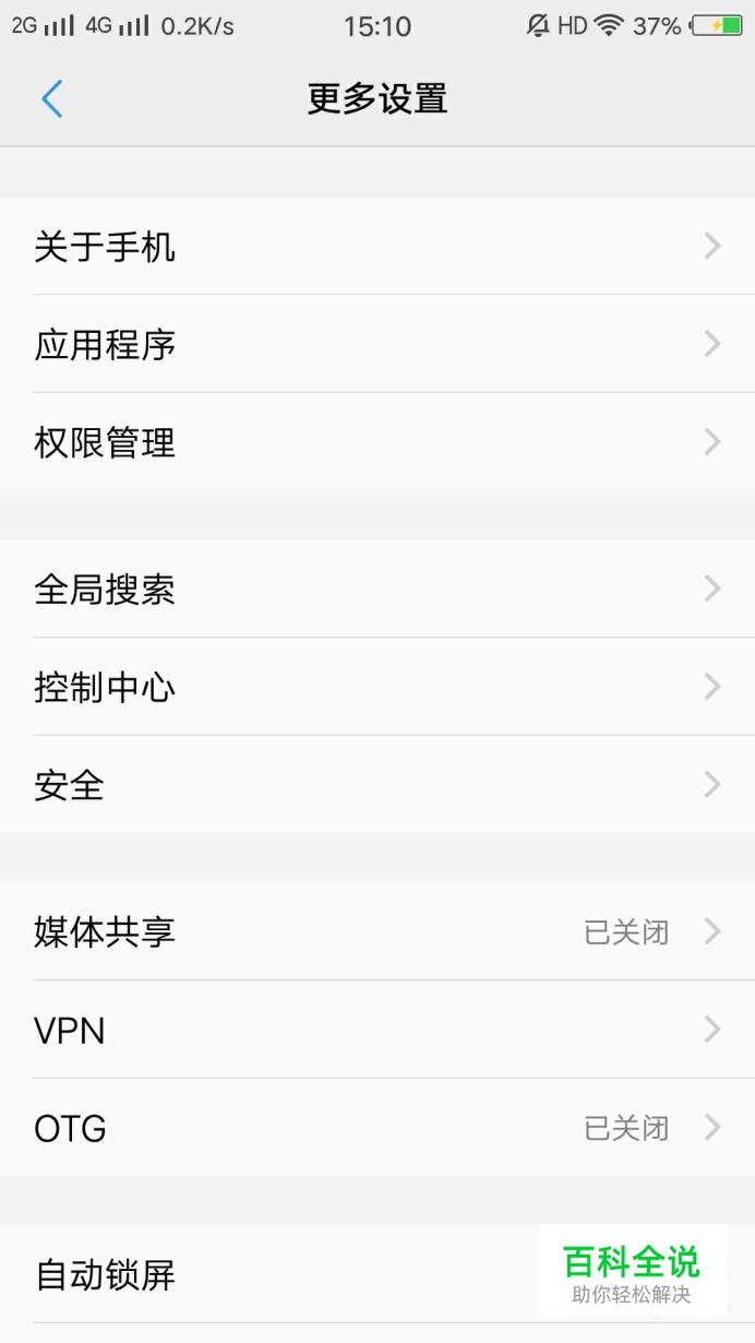 在“更多设置”页面,点击“应用程序”并进入,如图所示。