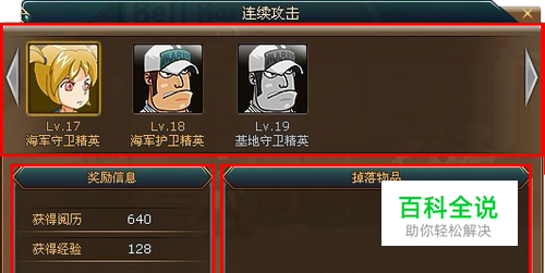 攻击界面 当击败某个部队之后,就可以在连续攻击面板中选择这个部队来进行“连续攻击”。 进入到连续攻击面板后,可以查看到攻击的对象、奖励信息、掉落物品,点击“连续攻击”开始战斗。