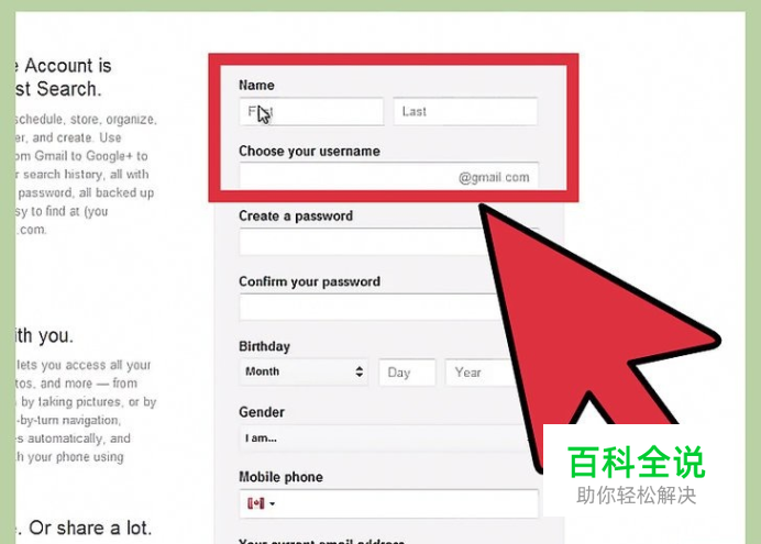 想一个用户名。默认情况下,您的用户名将会成为您的新的Gmail帐户名称。您可以点击用户名栏下面的链接用现有的电子邮件地址创建一个谷歌帐户而不是创建一个新的Gmail地址。 如果你是专门注册Gmail,这个选项不可用。在这种情况下,你必须创建一个Gmail帐户。 如果您选的用户名不可用,你会得到几个相关的选项或你可以尝试不同的用户名。