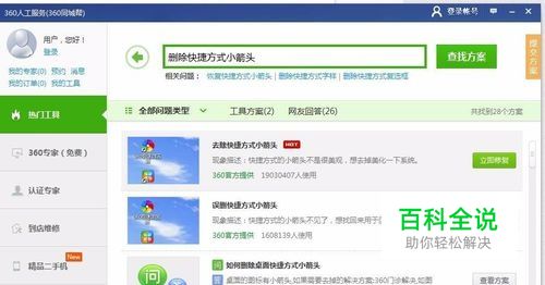 进入人工服务以后选择热门工具,在搜索框内搜索删除快捷方式小箭头,点击立即修复即可去掉小箭头,是不是很简单,如果没立即去掉重启下电脑就行