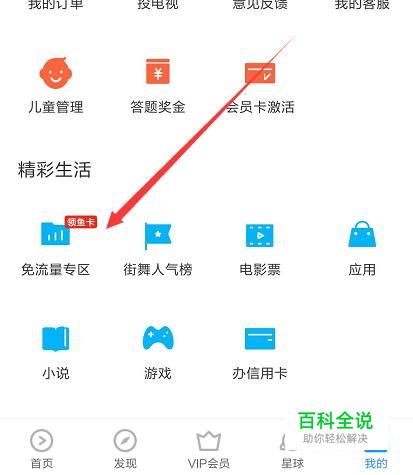 打开优酷APP,找到我的,向下翻看,找到精彩生活栏目,选择免流量专区,进行激活操作;