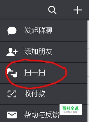在实体商店用手机支付时,打开微信,在右上角“+”选择扫一扫。