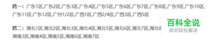 现在跨区模式分为8个区,其中跨3和跨7分A、B两个区,共计十个区,下图为跨1和跨2两个区所含的服务器,包括广东和广西,湖南和湖北四个区。