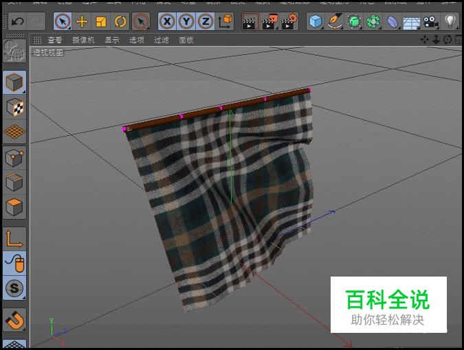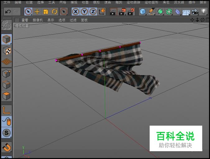接着,鼠标再移到透视视图的左侧工具栏这里,如下图所示,点击“点”这个图标,把平面转到点模式。 这时,我们可以看到平面(也可以说是布)已转为点模式了,显示着一个个点。