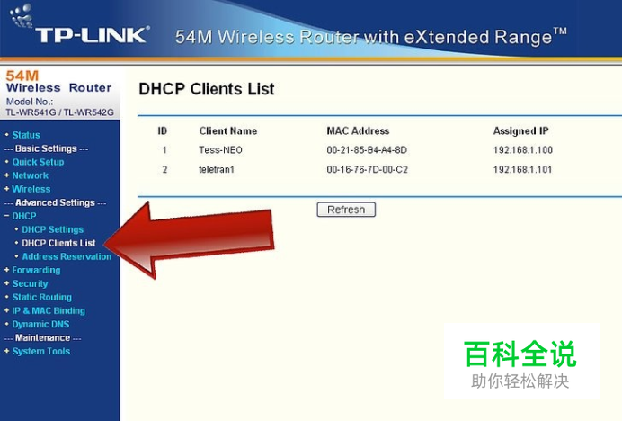按一下“ DHCP客户端表”按钮 。这个列表会告诉你通过DHCP连接到你的网络的计算机名称( DHCP自动配置电脑的IP和DNS设置。如果每个人都使用DHCP连接,这才会显示。如果有人使用自己的静态地址连接就不会显示在表中。)
