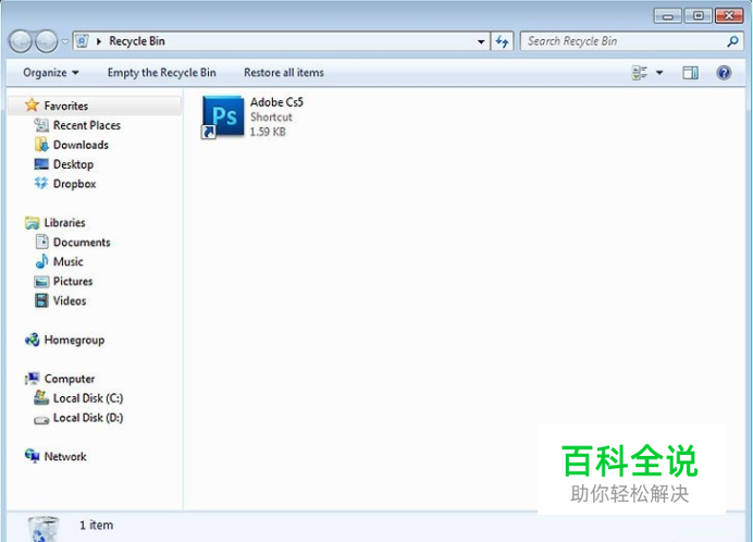 其他方法: *警告* 此选项非常近似“清空回收站”按钮。请谨慎操作。 单击回收站里的“文件”。 选择工具栏左边的“还原项目”。