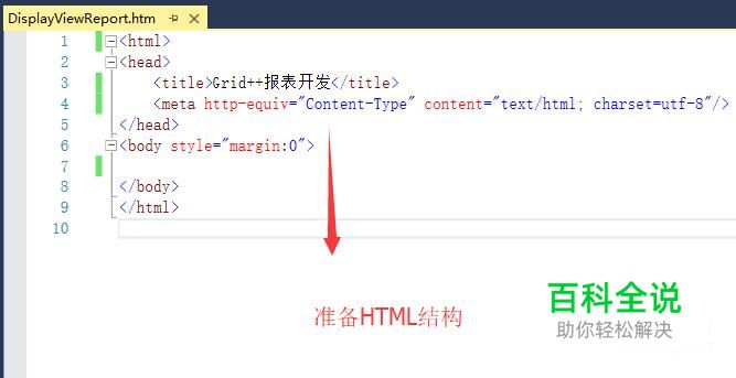 然后在style标签内将html和body元素的浏览器边距都设置为0,如下图所示