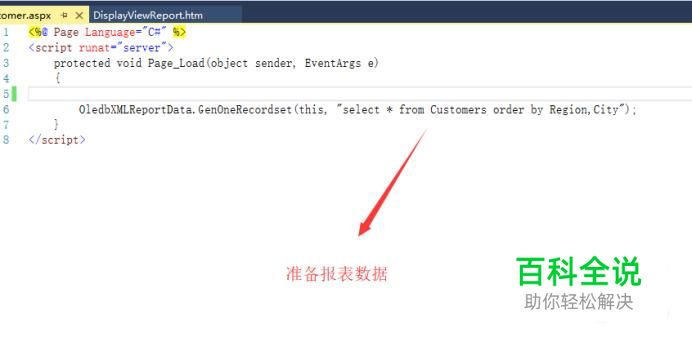 然后在Visual Studio中新建一个aspx文件,在Page_Load方法中通过select语句获取报表数据,如下图所示