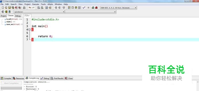 在打开的文件的右边窗口中写上如下代码 #include<stdio.h> #include<math.h> int main() { return 0; }