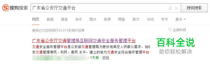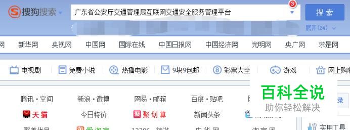 打开搜狗浏览器,在浏览器上方,我们输入“广东省公安厅交通管理局互联网交通安全服务管理平台”,如图。