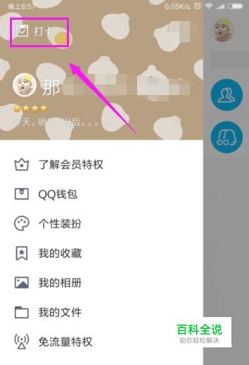接着就会在左侧弹出来,我们在上方就可以看到“打卡”,点击下,如图。