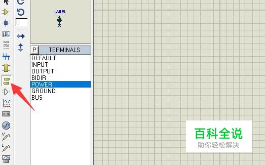 点击箭头所指的图标,可以在绘图区插入power、ground等基本元件。
