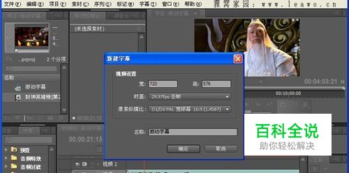 开始制作游动的字幕吧,点击菜单栏上面的字幕,选择新建-默认游动字幕,接着会弹出一个对话框,可以给字幕命名,如:游动字幕。