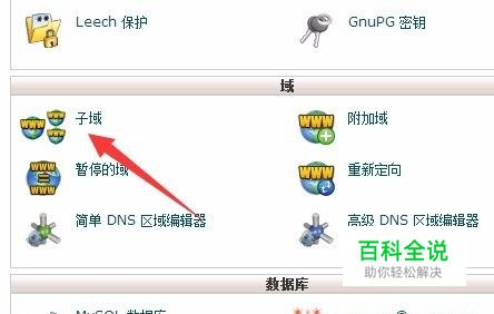1、首先是登录bluehost主机的cPanel控制面板,在“域名”的栏目中找到“子域名”按钮并点击;