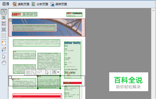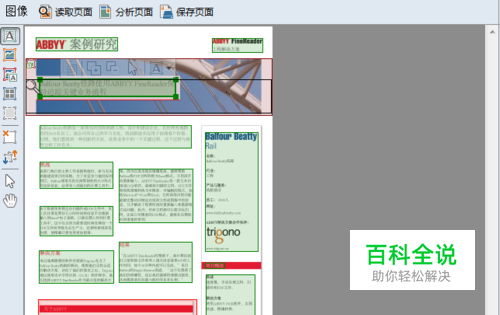 ABBYY FineReader会在识别前分析页面图像并检测图片上不同类型的区域,如文本、图片、背景图片、表格和条形码区域,此分析确定识别的区域和识别顺序。在用户界面中,不同的区域类型按其边界的颜色进行区分。