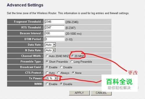 使用路由初始化配置,你将无法使用ifile、winscp等与电脑进行文件交换和共享,你的电脑也无法ping通ipad,请修改其设置。 A、首先请用电脑或者ipad连接路由(别告诉我你不会啊,不会的参考说明书了) B、 进入:genaral菜单,在左侧wireless--basic setting的band栏中,选择2.4GHz(G), (切记,原始配置不可以访问) C、进入wireless-advanced setting,修改 Channel Width 为 20Mhz(原始是AUTO) 修改TX Power为25% 然后点击应用重起(别告诉我你不会啊)