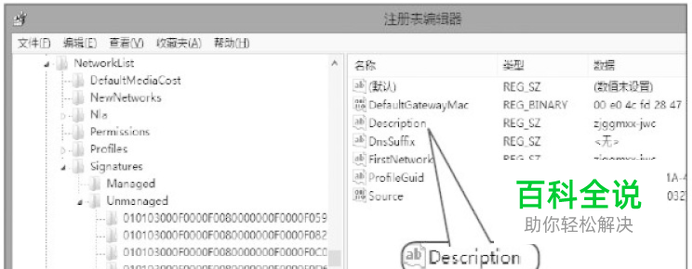 在使用Windows 8的过程中,有时会重复添加网络连接,虽然不影响正常使用,但是一长串无用的连接看起来很不顺眼。另外,一些默认的网络名称(如“网络 2”),既不直观也不好听。但是这些连接,是无法直接删除和改名的,我们只能借助注册表来完成。 单击系统托盘区的网络图标,在可用网络列表下查看当前正在使用的网络连接,例如zjggmxx-jwc2。然后按Win+R键调出运行对话框,输入regedit并按回车键,打开注册表编辑器,依次跳转到HKEY_LOCAL_MACHINE\SOFTWARE\Microsoft\Windows NT\CurrentVersion\NetworkList\Signatures\Unmanaged,其下分别有一些子项,在这里可以查看到相应的网络连接,依次删除已经不存在的网络连接对应的项。注意,千万不要把可用的网络项(本例为zjggmxx-jwc2)给删除了,所以操作前最好先将注册表备份。 接下来,可以对正在使用的网络连接名称进行改名,本例中,双击打开zjggmxx-jwc2中的Description项,输入自己想要的网络连接名称就可以了。重启系统后,修改即生效,有此需要的朋友可以一试。