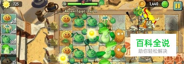 第十关 “戴夫你在干嘛”我想回家了,应该怎么做了,你还是小心法老吧 敌人 普通僵尸 路阻帽僵尸 铁桶帽僵尸 旋风带来的普通僵尸 法老王僵尸 本关推荐可用植物(可以选择植物了) 向日葵 消费阳光50 拳击白菜 消费阳光150 坚果墙 消费阳光50 卷心菜投手 消费阳光100 回力香蕉 消费阳光175 冰冻草 消费阳光0 本关提示 本关法老王亲自来抓人了,而且看样子他很着急吃你,还呆着他的金棺一起来的,他的防御力是一般僵尸的两倍,会出现三只,要十分小心,本关要巧用叶绿素和魔法。 我们解救了连发豌豆炮,现在豌豆炮的为了增加了“可是我们要消耗更多阳光了。”