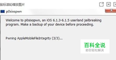 点击【Jaibreak】,《p0sixspwn》开始运行 (点击【Jaibreak】开始越狱后,请勿断开设备连接!)