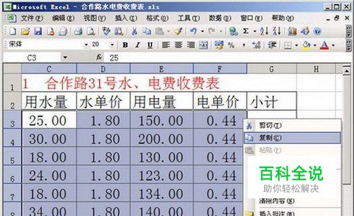 第1步,在Excel2003中选中数据所在的单元格,并依次单击“编辑”→“复制”菜单命令。