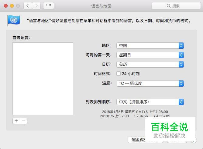 进入语言与地区设置界面,如果左侧首选语言中没有简体中文的话,就点击“+”