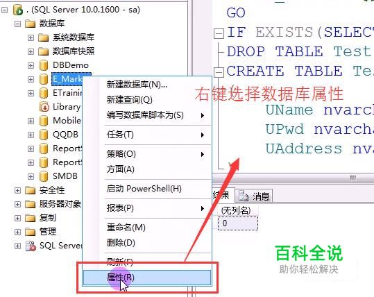 首先打开SQL SERVER的管理工具,找到要操作的数据库,如下图所示,右键单击选择属性
