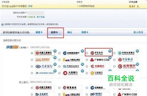 在【信用卡】页面下,点击“快捷支付(含卡通)”的【中国银行】——【下一步】;