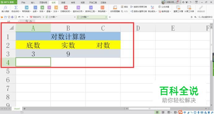 在表格中填入数据,其中底数代表对数函数的底数,实数是要求对数的实数,如图所示。
