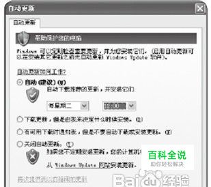 要实现自动更新,首先以管理员身份或者管理员组成员身份登录系统,依次单击“开始一控制面板一安全中心”,在打开的窗口中点击“自动更新”,然后在接下来的窗口中勾选第一项“自动”,并设置好时间,比如每星期二中午12点开始自动下载更新。当然,这里还可以选择“下载更新,但是由我来决定什么时候安装”,或者选择第三项,当有更新时通知你。你只要根据你的需要进行设置即可。