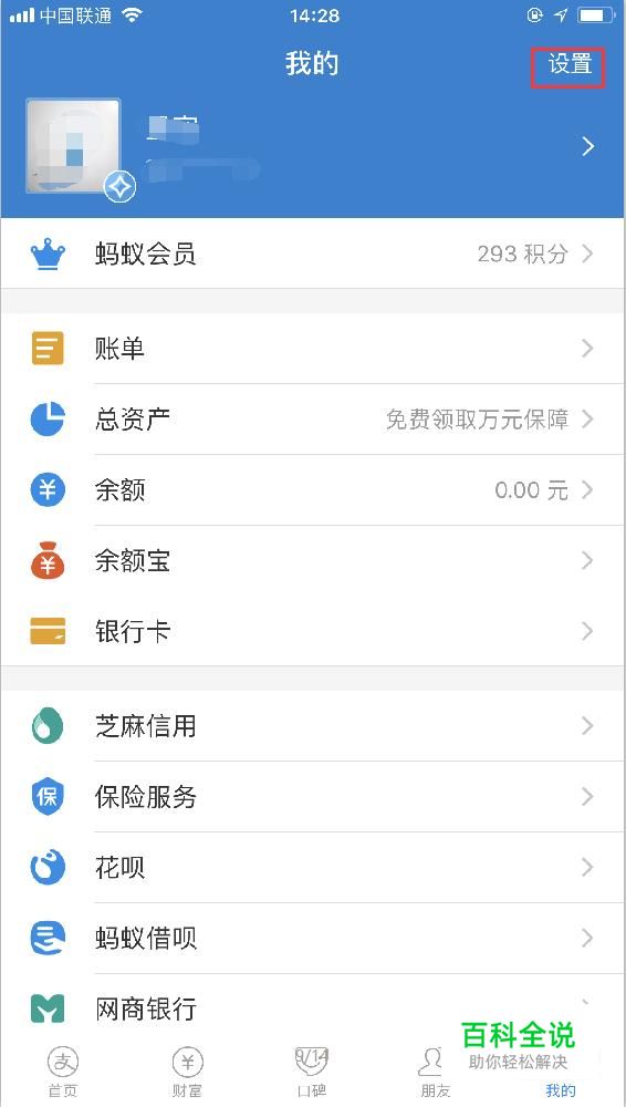 我们来到支付宝APP个人中心页面,点击设置按钮,如图所示。