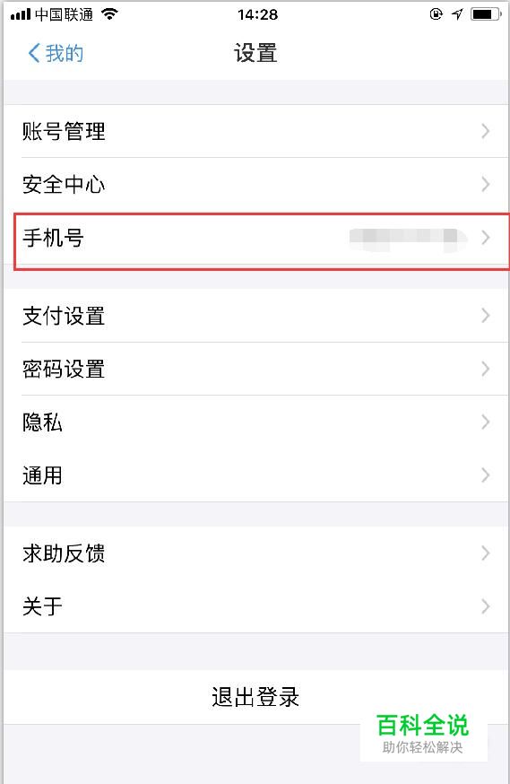 来到设置页面后点击手机号,进行查看手机号与修改操作。如图所示