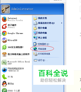 点击电脑左下角开始菜单--找到网络连接打开;