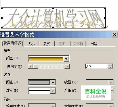 如上图,选择一种艺术字的样式,之后点“确定”,进入下一个对话框,在这里输入自己想要的艺术字文字即可,再点“确定”以确认插入的艺术字! ②:对于已插入的艺术字,可以进行与之相关的很多操作! 比如:修改艺术字的文字:在艺术字上面点右键,弹出快捷菜单,选择“艺术字文字”,即可编辑修改; 设置艺术字的版式:在艺术字上面点右键,弹出快捷菜单,选择“设置艺术字格式”,即可编辑修改;如下图!在这里,除了版式可修改之外,我们还能设置颜色与线条,大小等一系列的操作!
