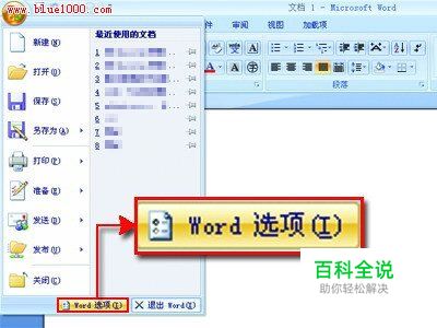 首先,单击“Microsoft office按钮”,然后单击“Word选项”(如图1)。 图 1 打开Word选项