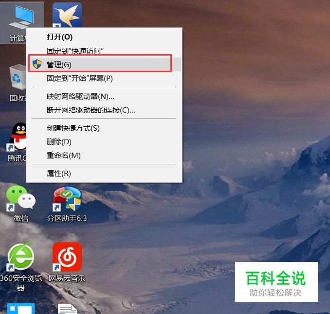 首先,点击桌面上的计算机图标,对其击右键,选择“管理”选项。