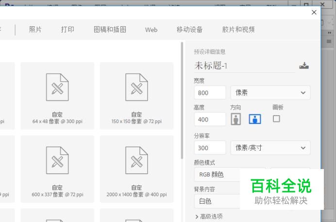 首先,我们打开ps软件并新建一个如图所示的画布。