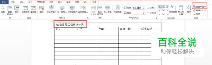 如果需要重复的标题不止一行,那么需要把重复的标题所在行都选中,然后再点击“重复标题栏”。