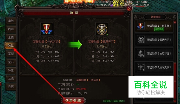 在9377雷霆之怒网页游戏里,荣誉勋章是一个重要装备部位,玩家佩戴高级的荣誉勋章,可以提高自身的战斗力。那么雷霆之怒荣誉勋章如何升级的呢?我们一起来看看雷霆之怒荣誉勋章升级方法分享攻略吧。 玩家需达到一定等级,可开启荣誉勋章系统。荣誉勋章装备可从勋章系统获得,大家只需消耗相应数量的荣誉积分值,便能兑换到初级的【初出茅庐】荣誉勋章。目前,荣誉勋章共有12个,按等级低高区分,依次有【初出茅庐】荣誉勋章、【略有小成】荣誉勋章、【出类拔萃】荣誉勋章、【江湖闻名】荣誉勋章、【声威赫赫】荣誉勋章、【侠肝义胆】荣誉勋章、【一代宗师】荣誉勋章、【誉满天下】荣誉勋章、【技冠群雄】荣誉勋章、【所向无敌】荣誉勋章、【雷霆霸主】荣誉勋章、【雷霆主宰】荣誉勋章。玩家需要获得各种高级的荣誉勋章,同样可花费荣誉积分值,对【初出茅庐】荣誉勋章逐级升级得到。随着荣誉勋章等级提升,升级消耗的荣誉积分会不断增多,大家平时就得多注意收集一些荣誉积分。雷霆之怒荣誉积分值的获取方法,玩家可完荣誉任务面板里的各项任务获得,或者使用一些荣誉卷轴的道具收集荣誉积分,荣誉卷轴在商城里有售,大家可花费(绑定或非绑定)元宝购买,还能花费历练积分兑换哦。 雷霆之怒荣誉勋章在装备界面有固定的装备位置,该装备是绑定状态且无法卸载的,带无需担心被杀掉落该荣誉勋章。荣誉勋章与普通装备一样支持强化操作,玩家不妨通过强化功能,提升荣誉勋章的实力。