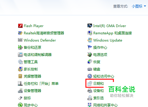 点击开始菜单,打开控制面板,然后打开时间与日期选项。