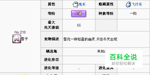 基础属性 属性:鬼系,隐藏属性:飞行系。等阶:A级,种族等阶 一阶,最大先天潜能:65 生命值 37 速度 62 攻击力 32 防御力 34 魔攻值 76 魔抗值 67