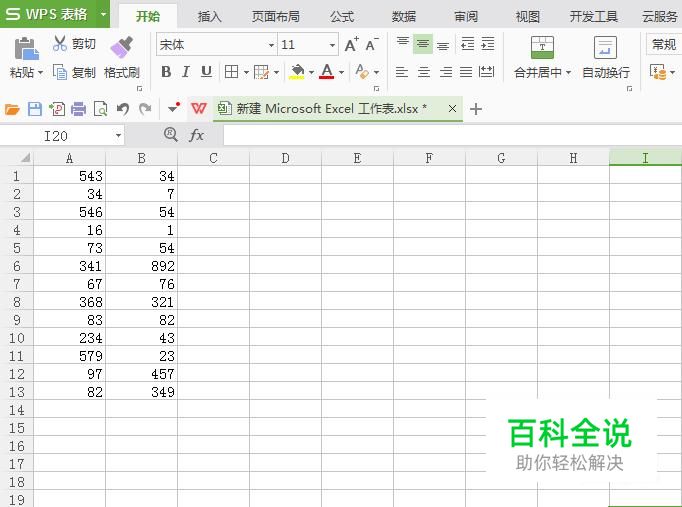 打开WPS表格,A列和B列为所要进行除法运算的数据。