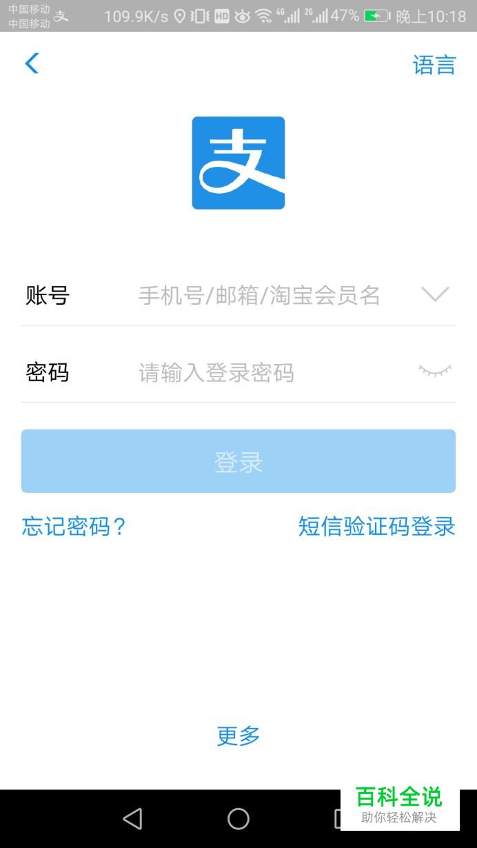 打开支付宝(没有支付宝的可以在应用商城下载),然后输入密码和账号登录,如图