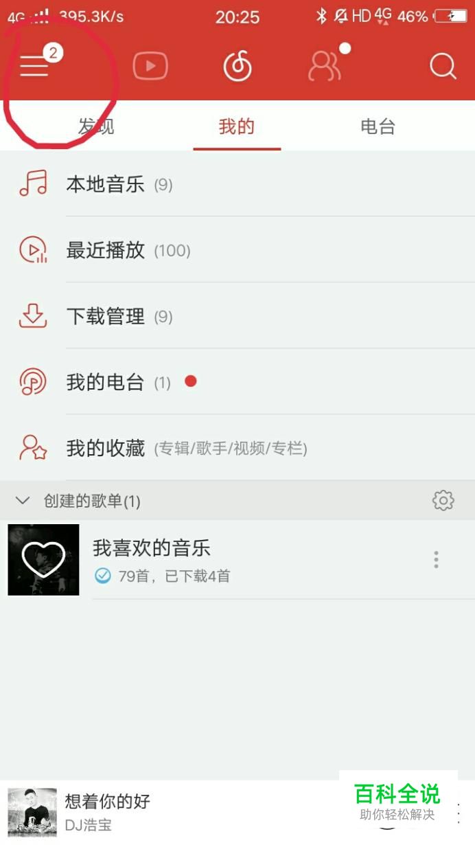 打开网易云音乐后,点击界面左上角的三条横线,如下图所示。