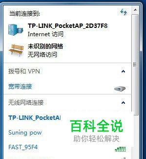 点击桌面右下角网络连接的图标,本人使用的是无线网所以就是这个标志,连接宽带的话就会是小电脑图标。
