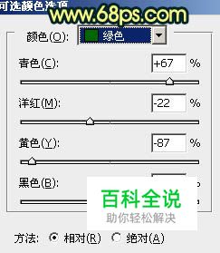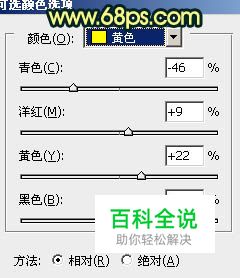 创建可选颜色调整图层,对黄,绿,青,白进行调整,参数设置如图8 - 11,效果如图12。这一步是把黄色调成橙色,绿色转为青色。